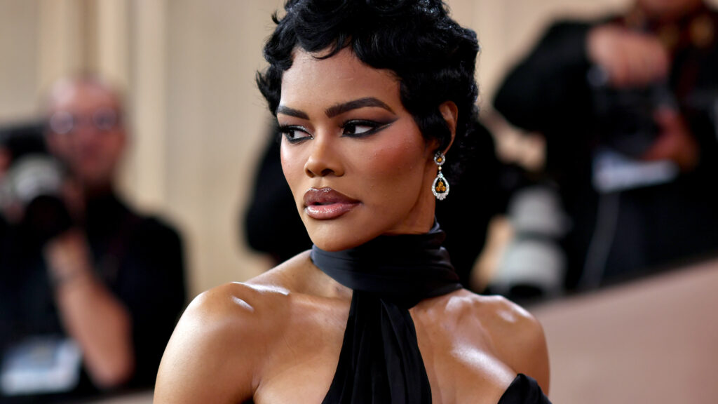 Teyana Taylor commanded attention with a bold, sculptural ensemble that featured two crowns and a lace see-through dress that echoed the house’s surrealist DNA.
