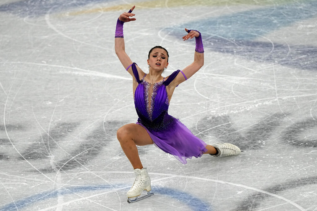Beijing Olympics Figure Skating Kamila Valieva, of the Russian Olympic Committee, competes in the women’s short program team figure skating competition at the 2022 Winter Olympics, Sunday, Feb. 6, 2022, in Beijing. (AP Photo/David J. Phillip)